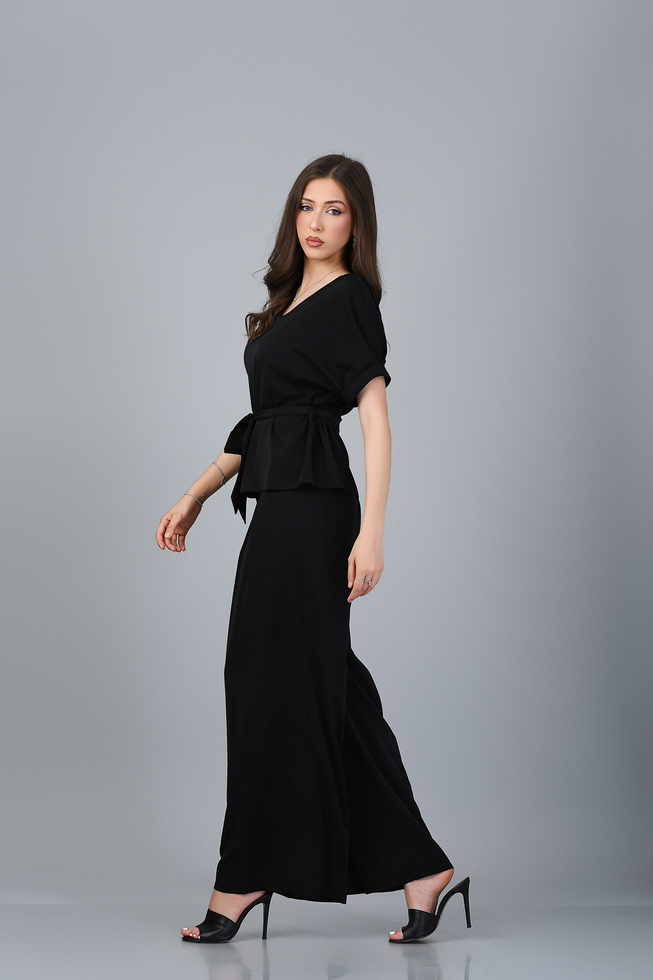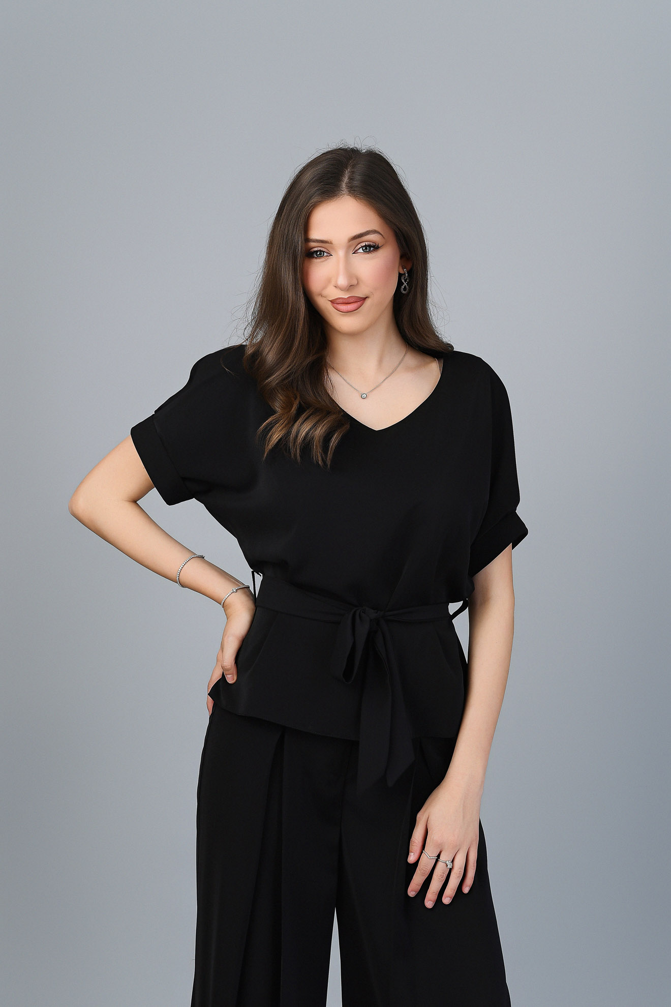 Confeționată cu migală în atelierul Valerio, din țesătură densă, fluidă, plăcută la atingere, în croi lejer, cu decolteu în V accesorizată cu cordon din aceeași țesătură pentru un plus de eleganță.