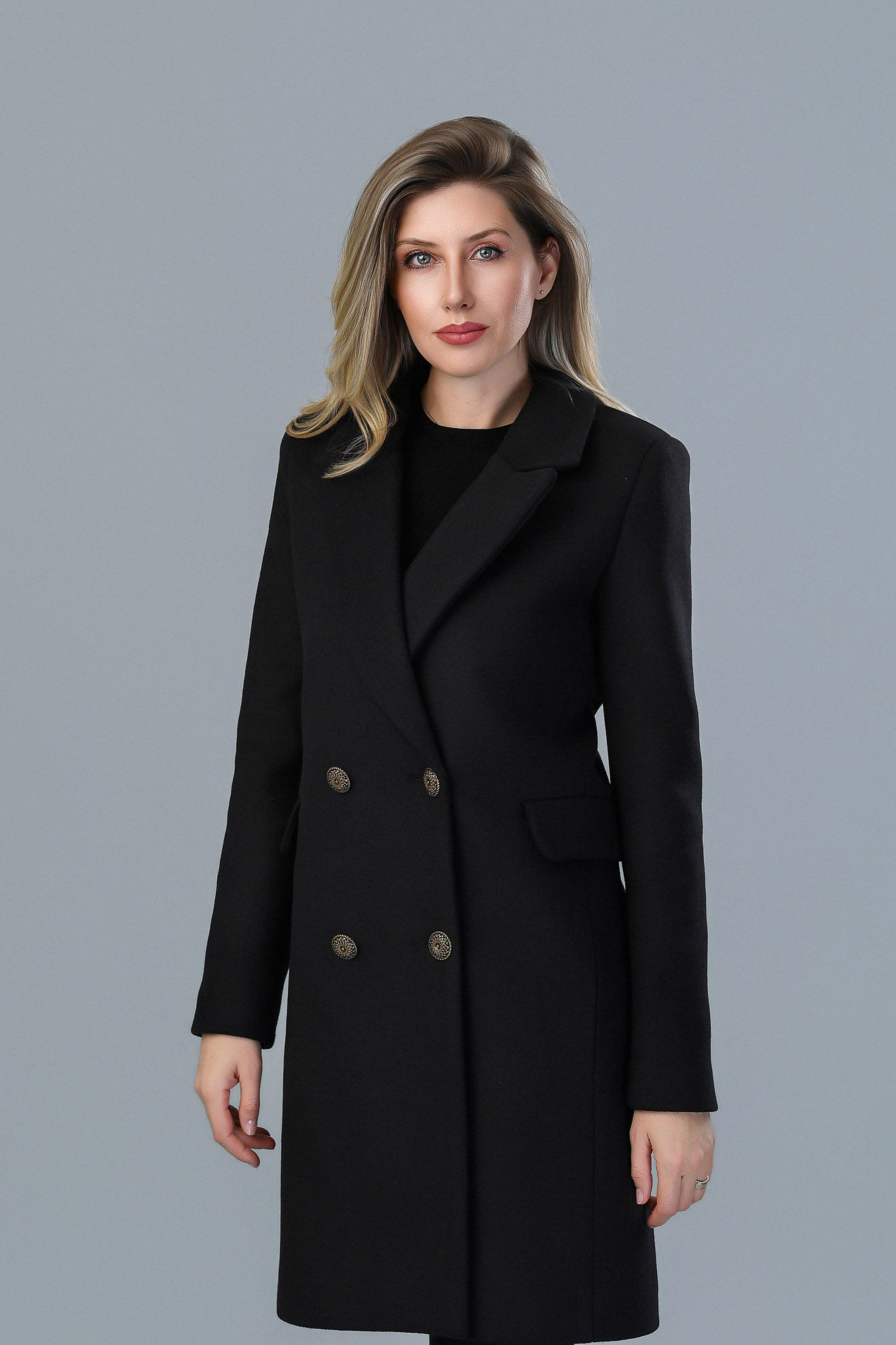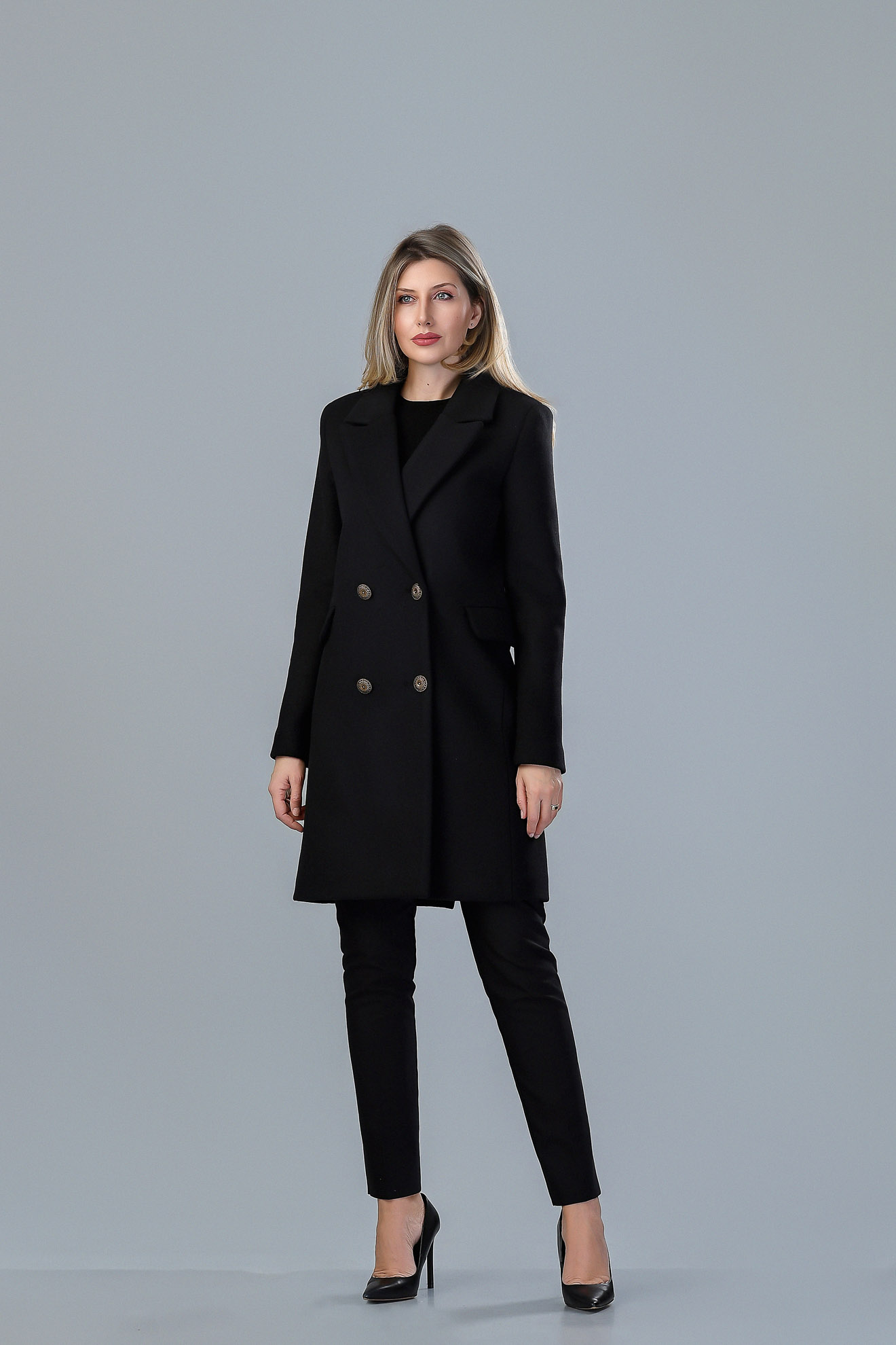 Confecționat din stofă cu 30% lână în compoziție, căptușit, în croi lejer, prevăzut cu buzunare și rever.