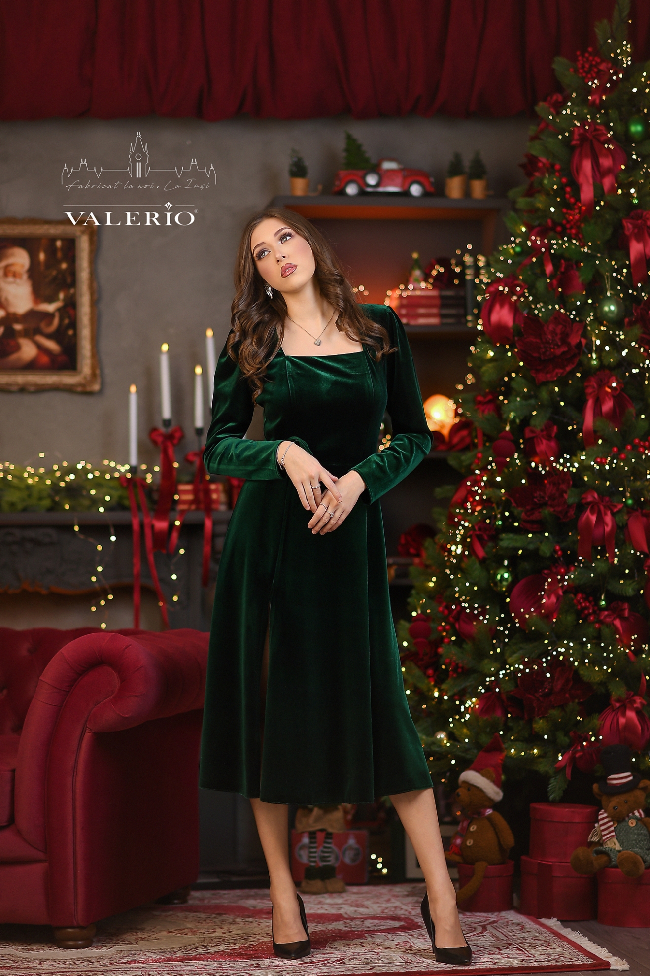 Rochia Sidney de culoare verde din catifea