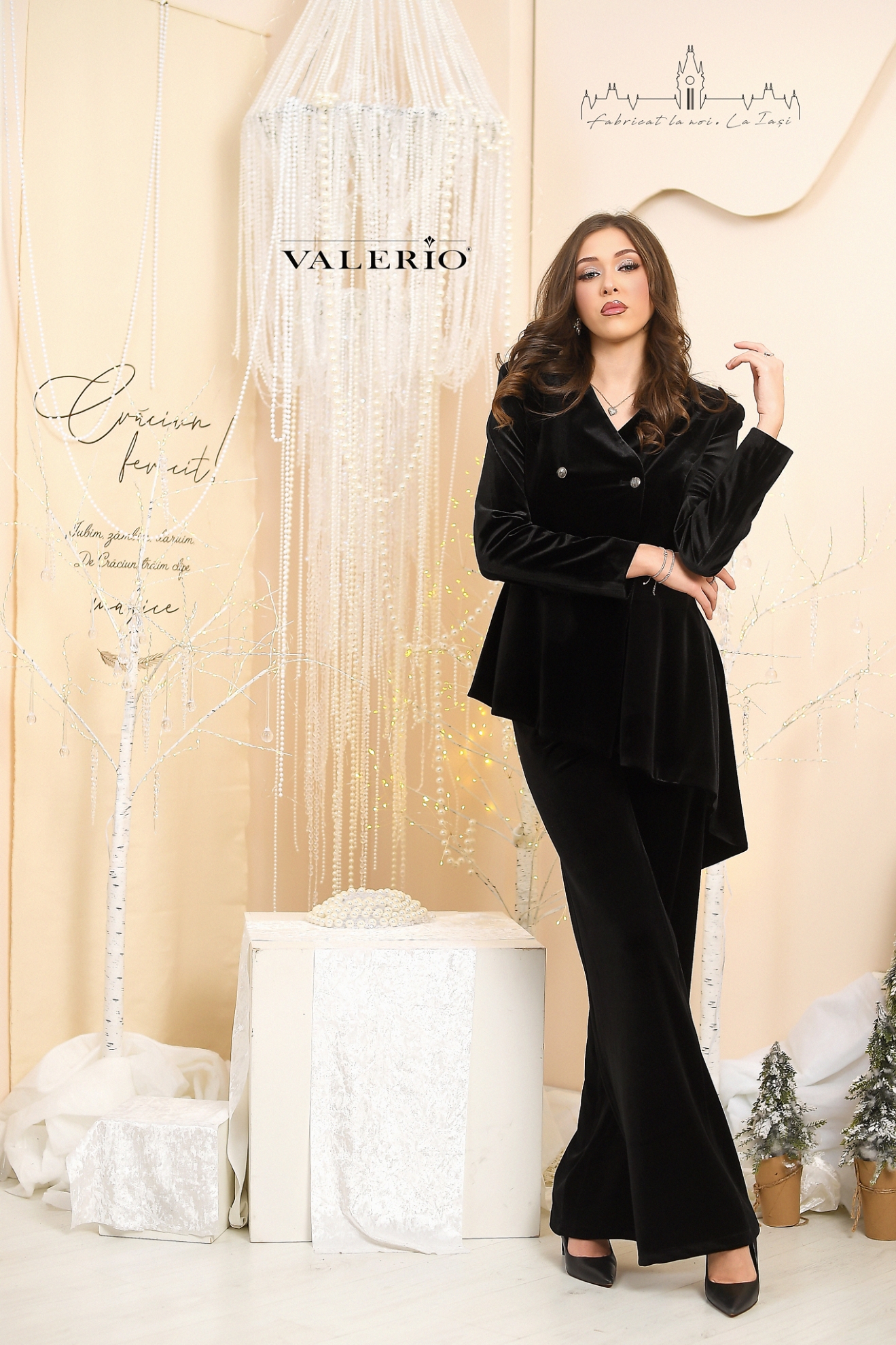 Confecționat în croi cambrat, asimetric, parte peste parte cu două rânduri de nasturi, căptușit.
