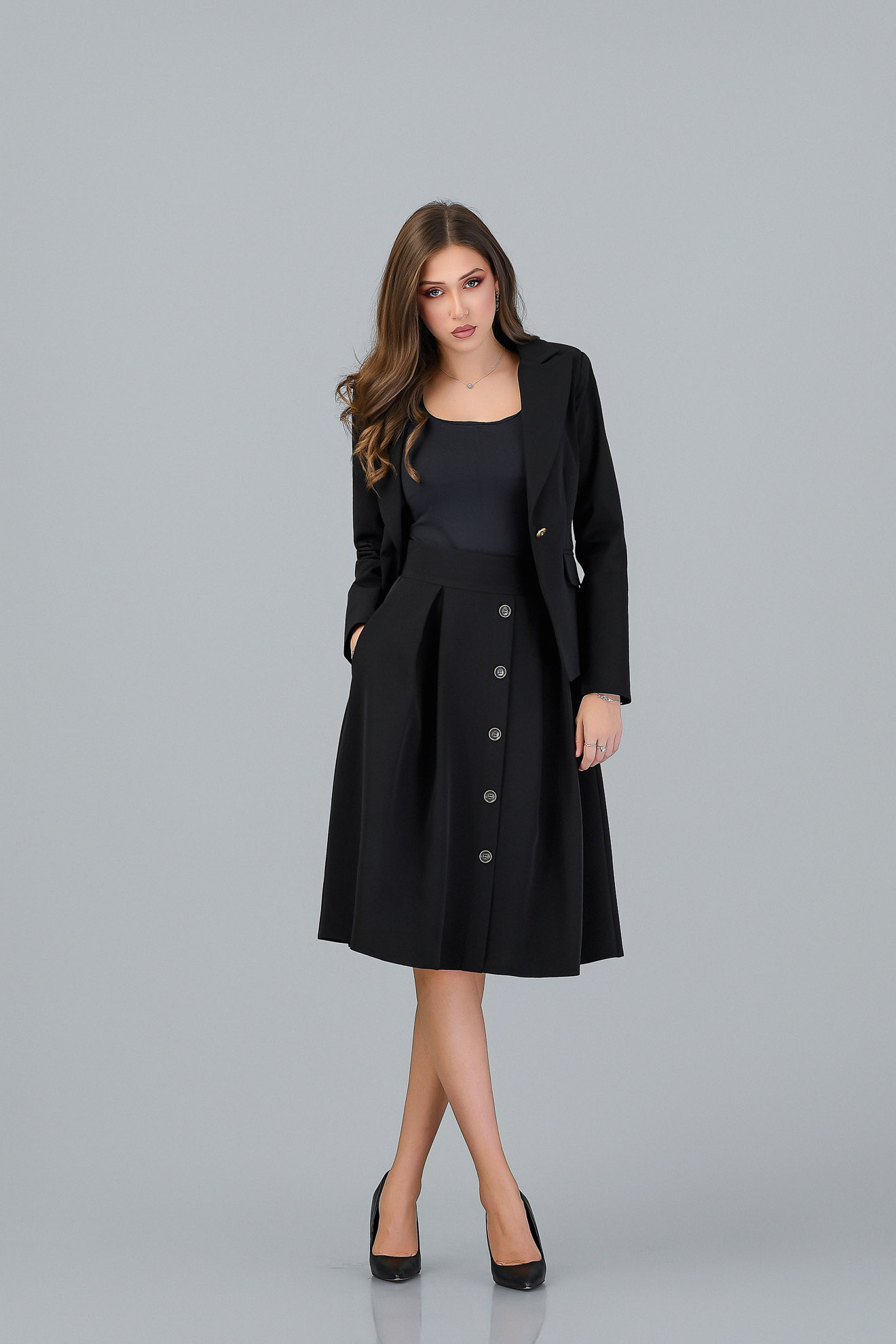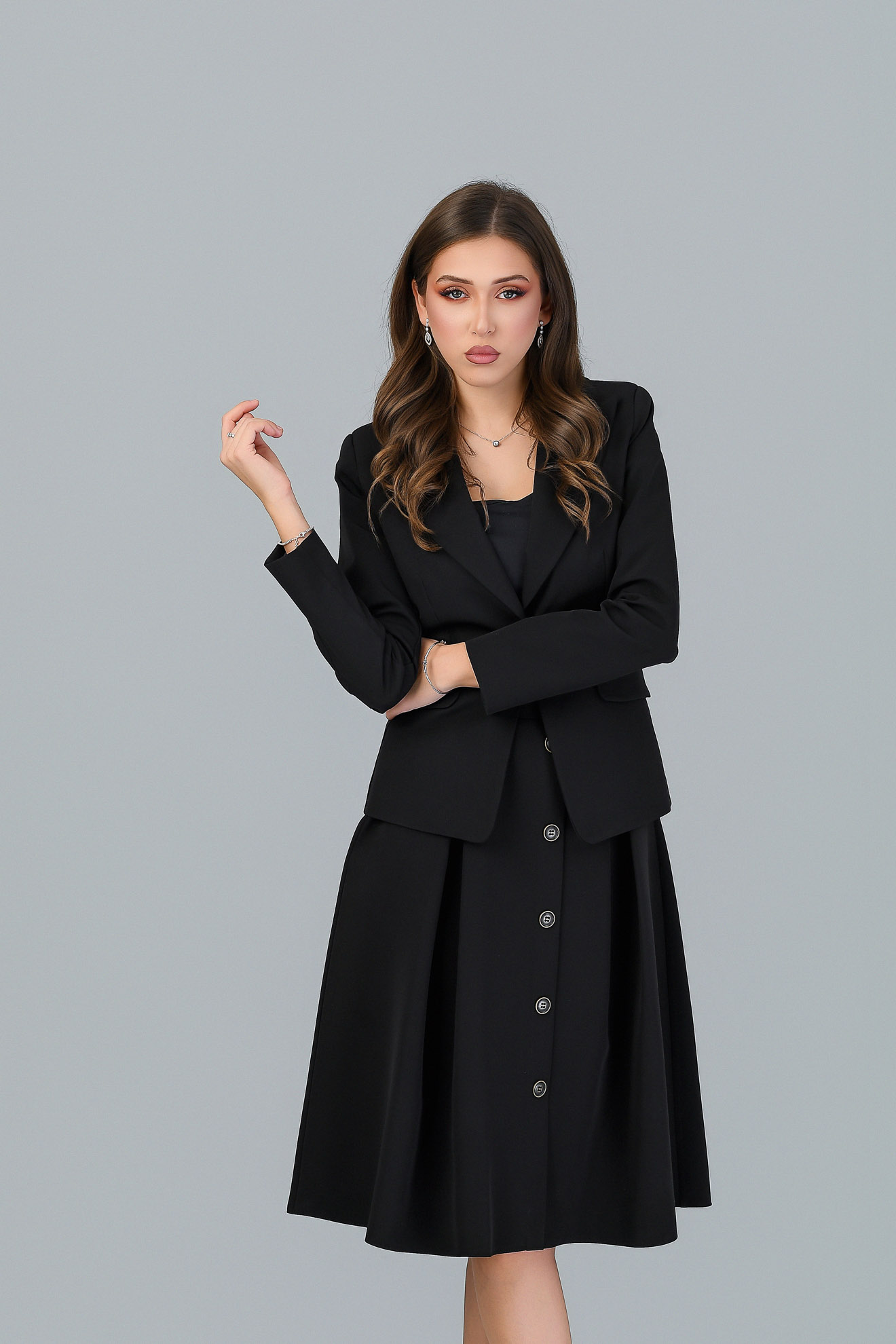 Confecționat din stofă de calitate, căptușit, în croi cambrat, prevăzut cu buzunare, se încheie într-un nasture.